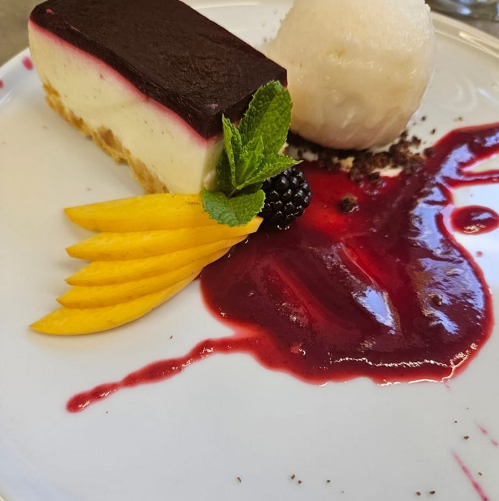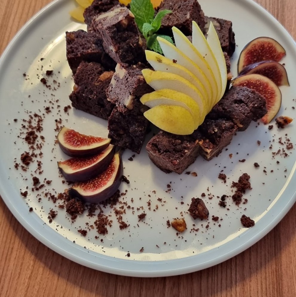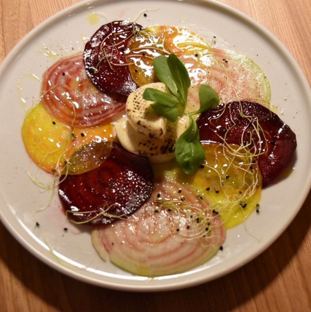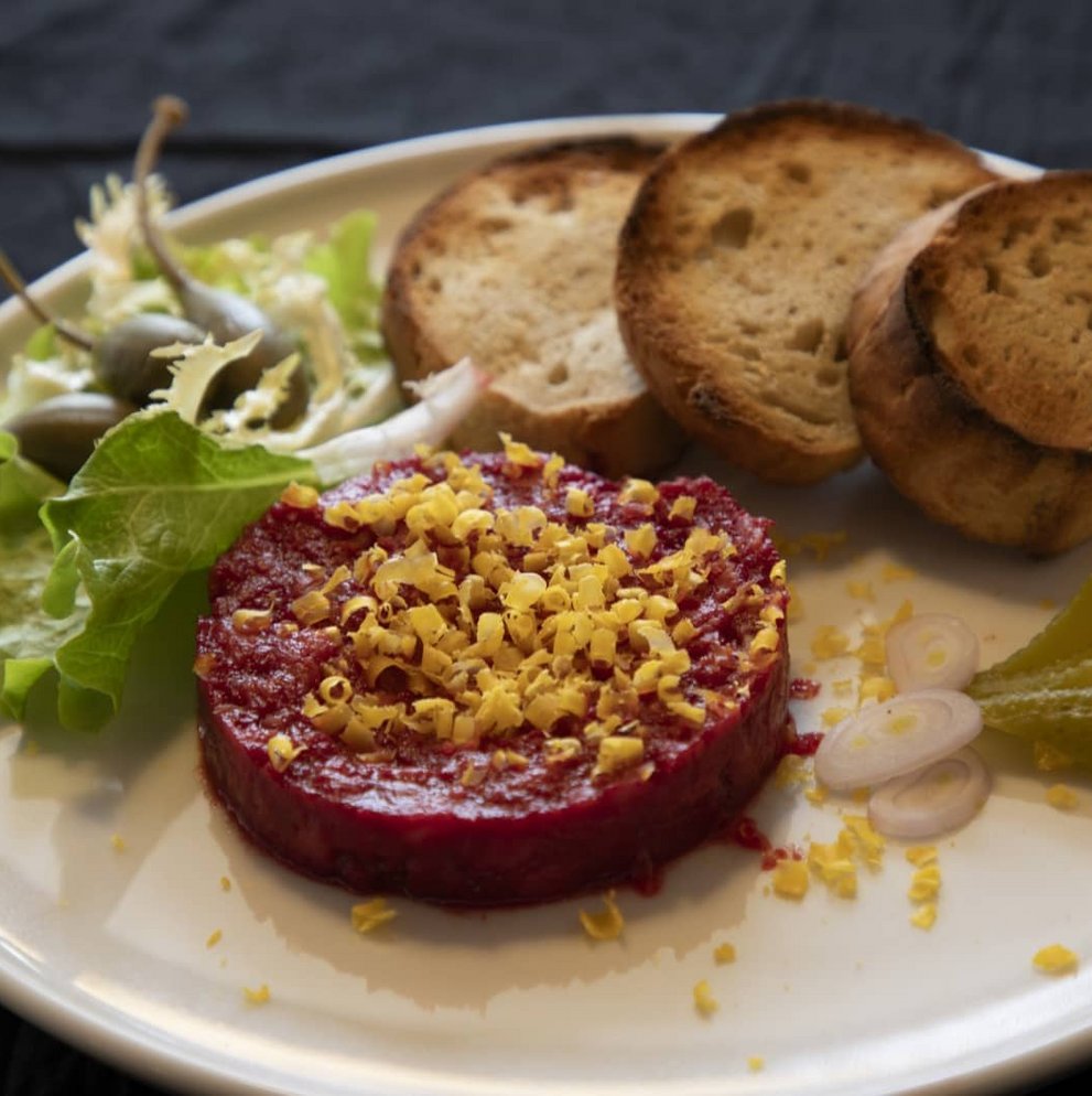 Mit hausgemachten Pommes Frites, Saisongemüse und gerührten Preiselbeeren